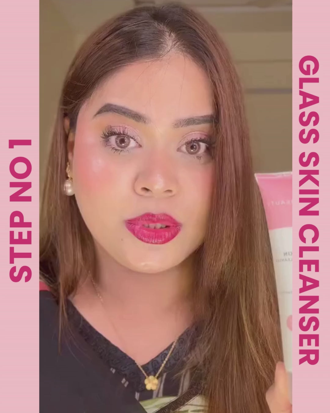 Dampen the skin and apply a small amount of Glass Skin cleanser on the face for 60 seconds, massage into a lather and rinse with warm water.