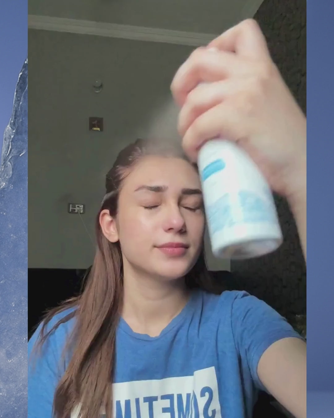 Step 1: After mild cleansing, spray 12 to 15 inches from skin.